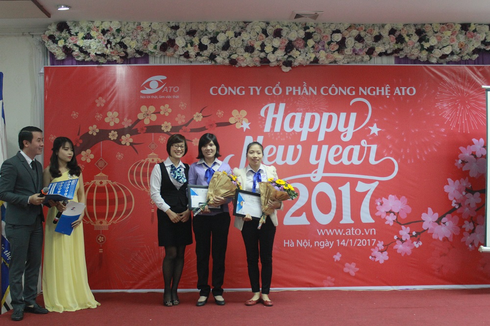 Và buổi lễ Tất niên cũng chính là dịp để chúng ta tôn vinh và khen thưởng những cá nhân đóng góp tích cực cho hoạt động của ATO trong năm 2016. Thành công của một tổ chức được góp phần từ sự nỗ lực và cố gắng không ngừng của mỗi cán bộ nhân viên trong tổ chức đó. Tại buổi lễ, Ban lãnh đạo của Công ty đã trao những phần thưởng đầy ý nghĩa cho các cá nhân có những thành tích xuất sắc trong năm 2016. Đây là những gương mặt tiêu biểu, đã đóng góp công sức, lòng nhiệt huyết của mình cho tổ chức, góp phần xây dựng con thuyền ATO vững mạnh vượt qua mọi khó khăn, thách thức, đi tới thành công.